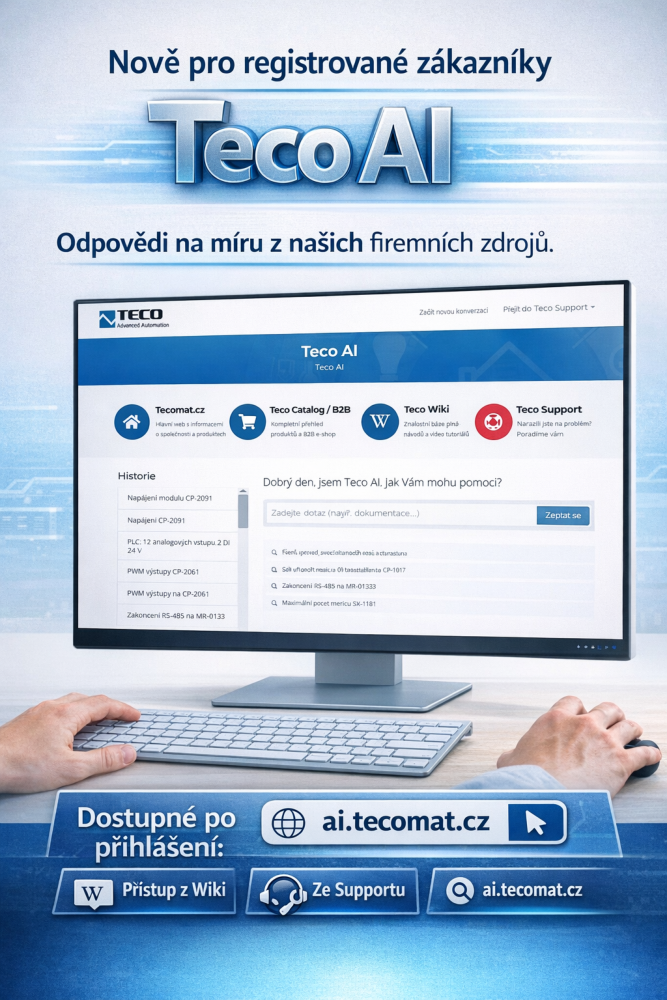 Tecomat je otevřený programovatelný řídicí systém. Logiku, algoritmy i chování zařízení určuje váš program, ne skrytá konfigurace.