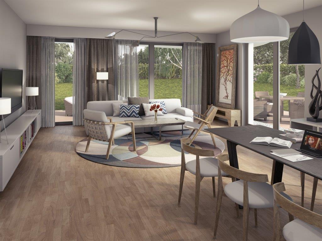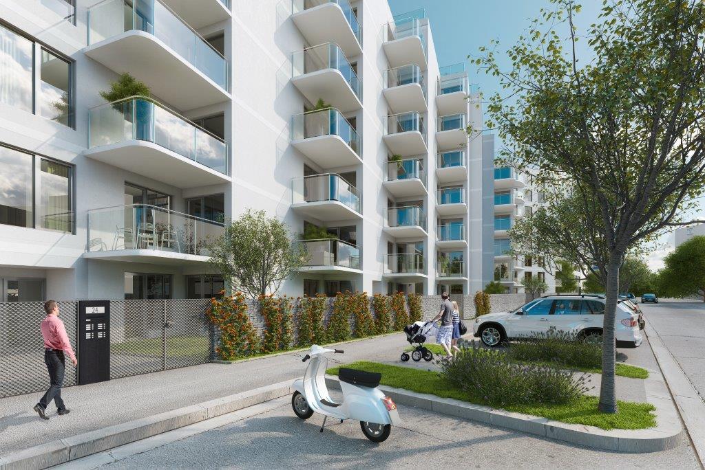 Such a high energy efficiency has been achieved by using a modern materials along with the smart ventilation systems. These two solutions helped to reduce energy consumption to very low level. An effective air-exchange (without need of opening the windows) in the apartmens can be done by using a modern heat recovery ventilation systems by Paul and modern triple glazed windows.