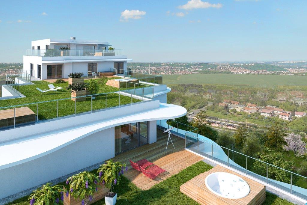SKY Barrandov is a new residential project at the Barrandov district in Prague, Czech Republic. The project is designed by the famous Eva Jicinska architect. The project consists of two separate buildings with luxurious apartments and one service building. The building complies with the highest Energy Performance Certificate (A level).