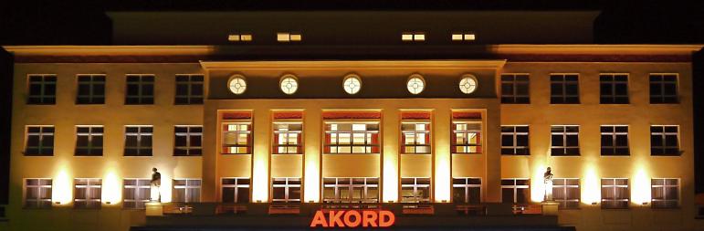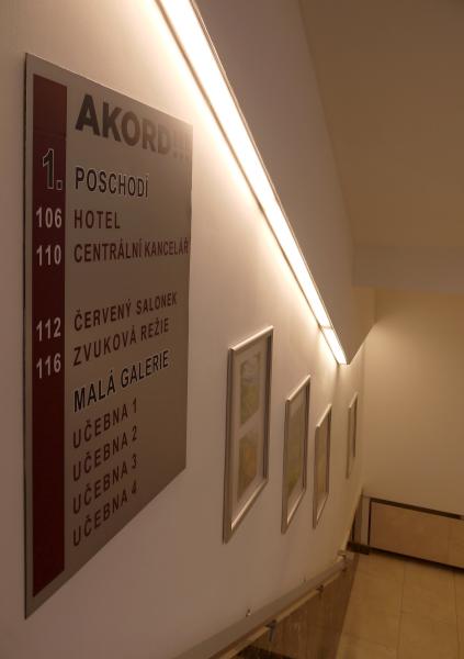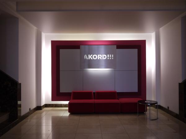 - Club Akord, first floor, bar in first floor and a lounge at club. There are installed ceiling tubes and LED lights, controlled via DALI bus. There are prepared light scenes there. During operation of the club, there is possible to change complete lighting or switch off from place of music direction.