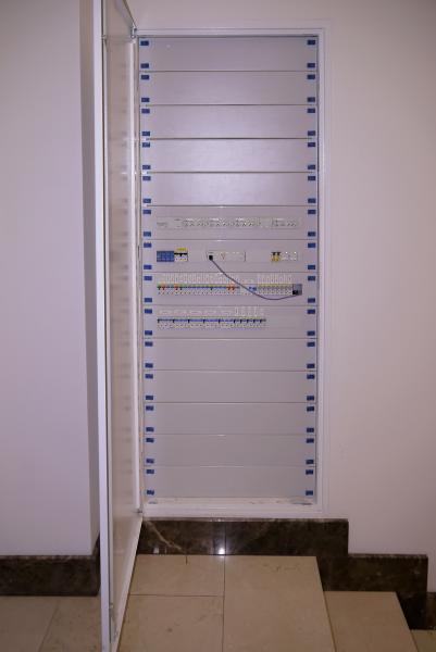 In the building, there are installed about 680 pc lights, 1 400 light sources and surface lighting on area of 580 square meters. This area is covered by LED stripes and transparent foil. For control of the light there are used 350 DALI addresses. System Foxtrot controls 85 pc of jalousies and blinds. At selected places, there are installed motion detectors connected to digital input of the system. System also monitors 16 groups of auxiliary contacts, in total 64 circuit breakers, which are connected to digital inputs and via failure signaling there is monitored its status.