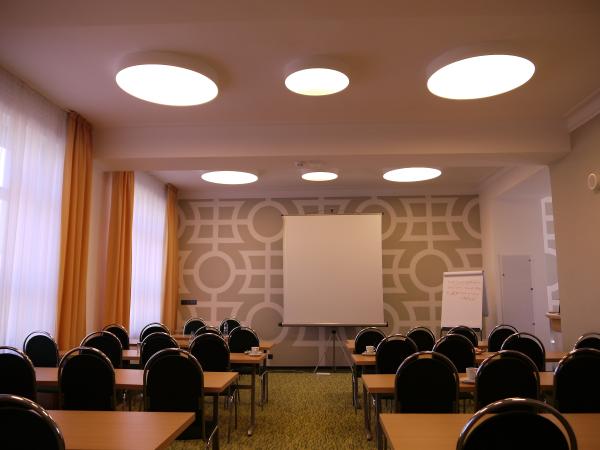 - Central dressing room ground floor, corridors from first to fifth floor. Lighting in ground floor and first floor is created by LED stripes, which are installed under translucent foils. LED stripes are controlled via DALI bus. In part of corridors in second to fifth floor there are installed original bulb lights from 50th of 20tt century, which were rebuild. Standard bulbs have been exchanged by LED lights and stripes.