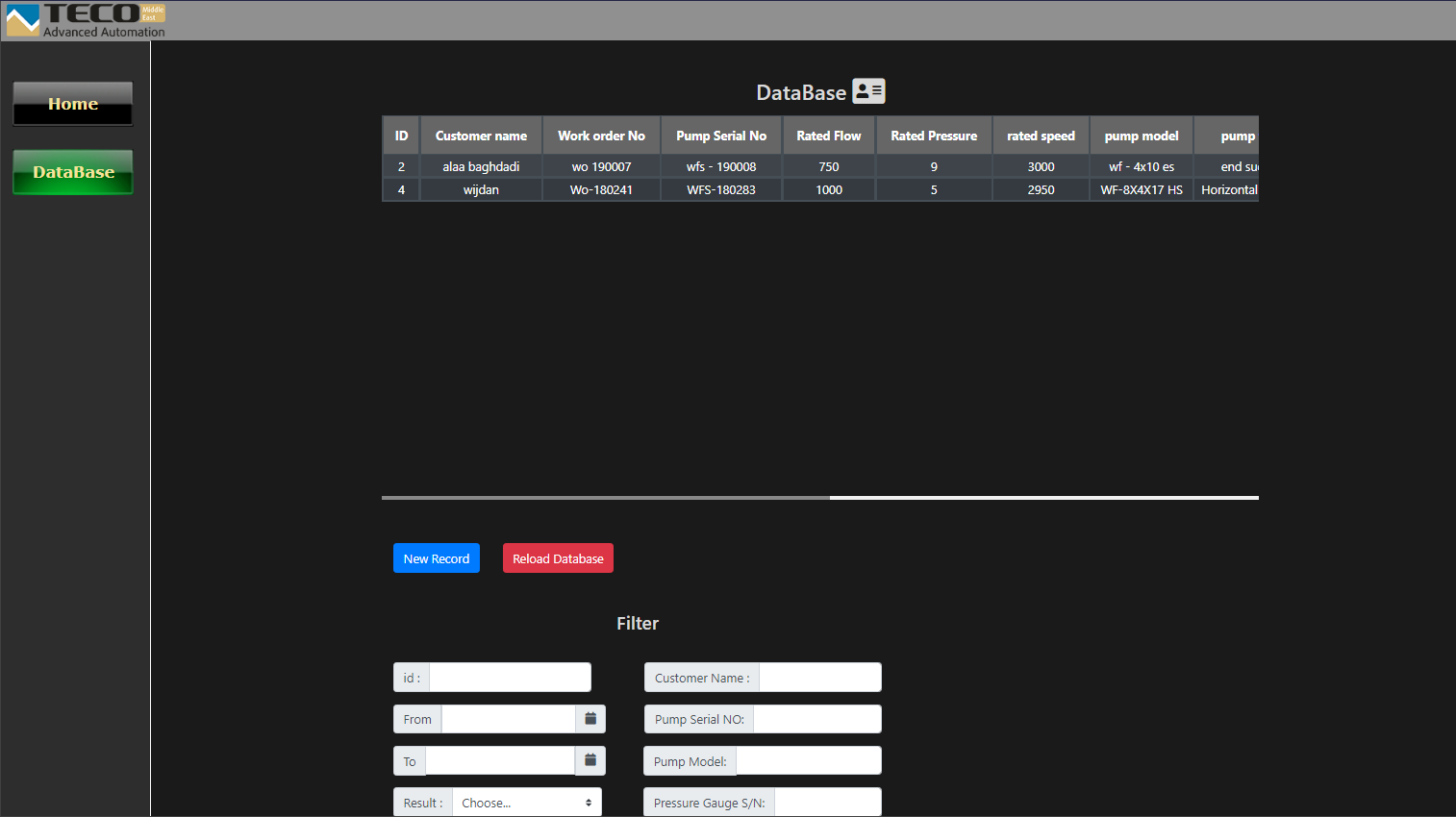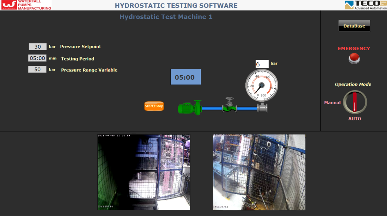 Due to the possible explosion of the pump during testing, each test process is monitored remotely using two cameras in the test zone.