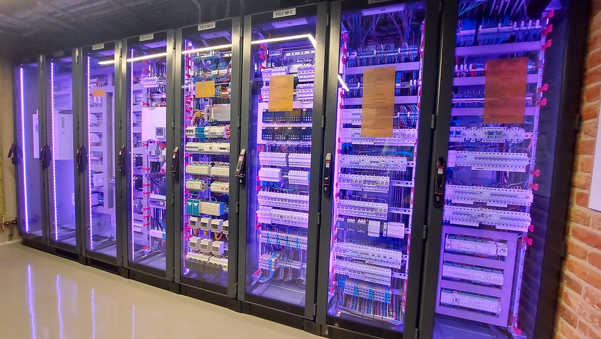 CP-1001 and CP-1000 units actively and mutually communicate via a local area network (LAN). Most of the light sources are controlled via the DALI bus, 90 % of the light fittings are dimmable. Integration with the building management system (BMS) server via the ModBus TCP/IP bus.