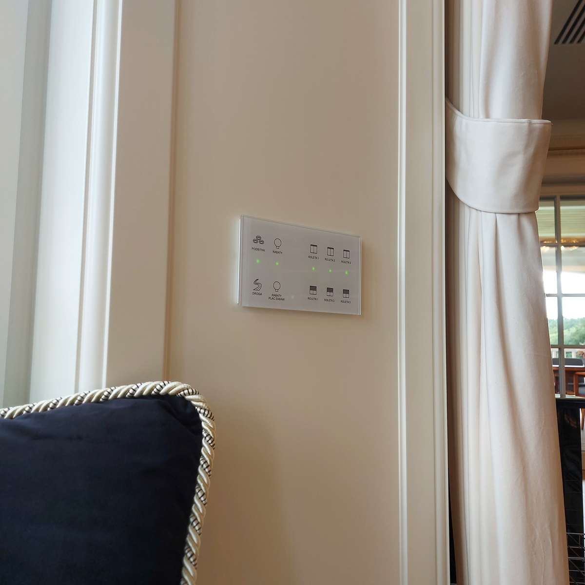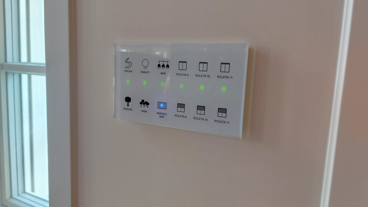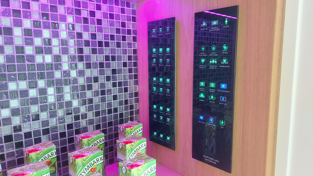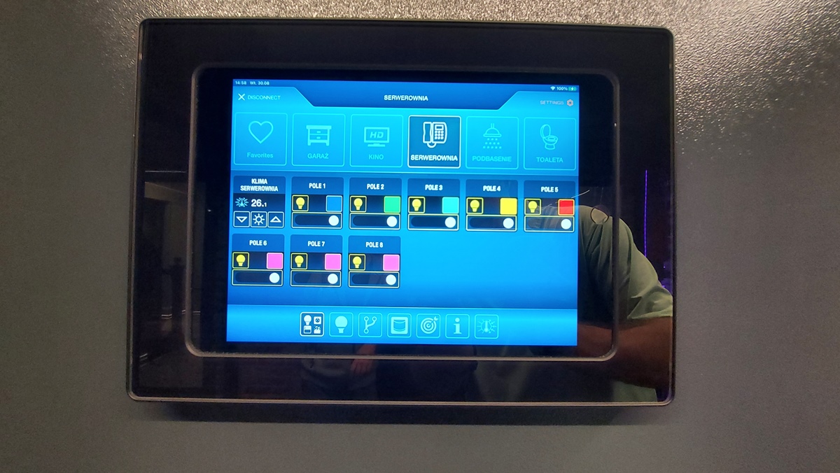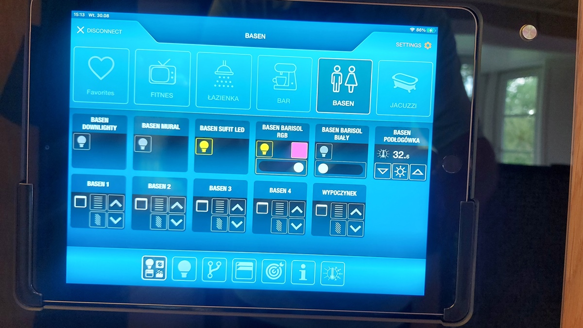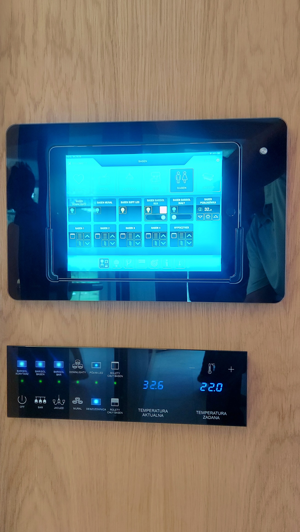 - control of: lighting, heating, air conditioning units, blinds, outdoor lighting, park, driveways, RGB light scenes in the pool area