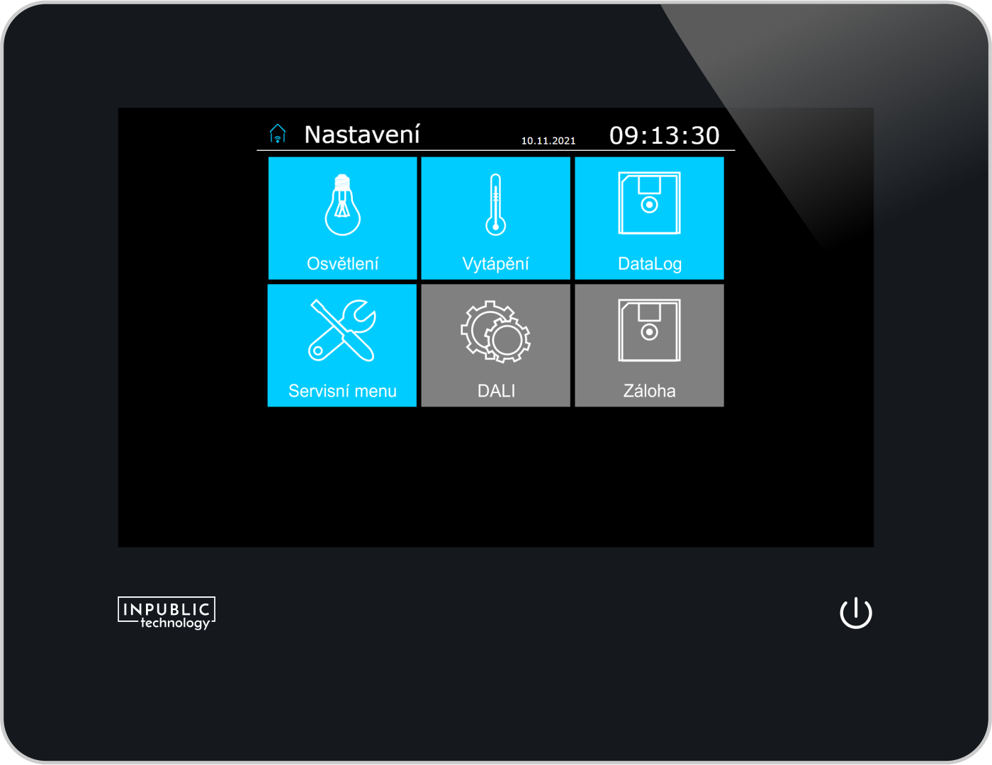 • hall lighting control via the DALI interface, including RGBW lights and switching of operating lights