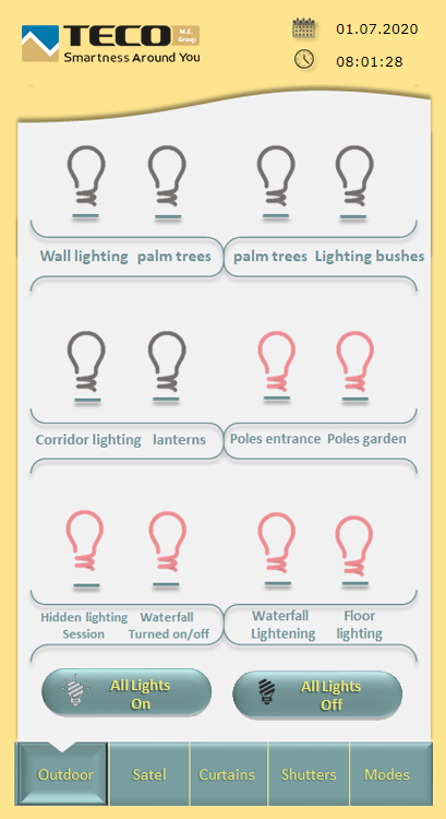 The owner of the villa can comfortably control all the lighting in the garden and thus create the lighting atmosphere that he prefers using various lights in the garden.