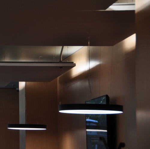 In a total, in Happiness Cafe there are placed more than 50 individually dimmable lights of three types.