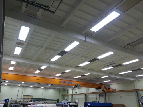 The type of manufacturing and work required high demand of lighting sources. It was necessary to reach intensity of min. 900 lx at user level and ensure sharp light temperature and light index. That´s why they couldn´t use LED ligths and they chose ligth sources 4x49W controlled by DALI bus.