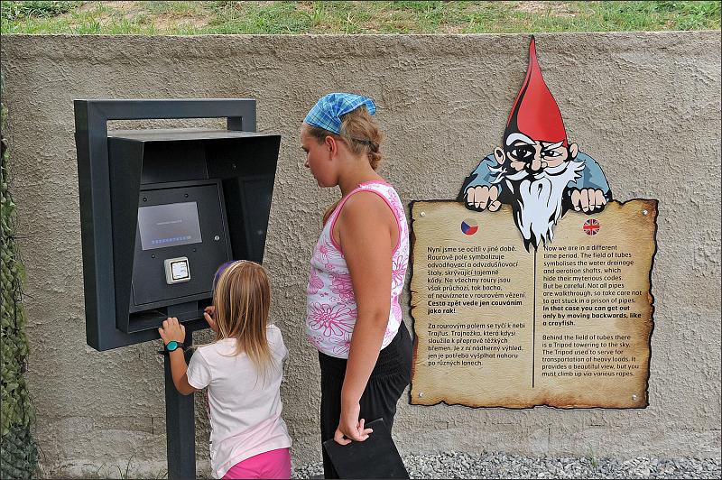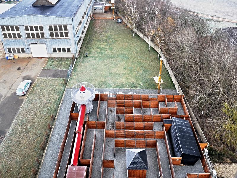 The mining tower is surrounded by entertainment park for both children and adults. On the area of 6 000 square meters, divided into two levels, there are placed 26 various amusements, called by mineworkers slang. In these amusements there is an interactive game „Magic Permon“, controlled by high tech technologies (system Tecomat Foxtrot). Visitors can find the largest labyrinth in the Czech Republic, imitating mine tunnels, mine lake, volcano connected with rope park, virgin forest, old mining workplace and real mining tunnels, equipped by other facts and entartainment activities.