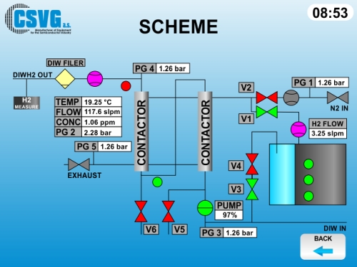 Control of technology for controlled dissolving of hydrogen into the water - Samsung Mobile Displays, South Korea. Implemented by: CSVG a.s.