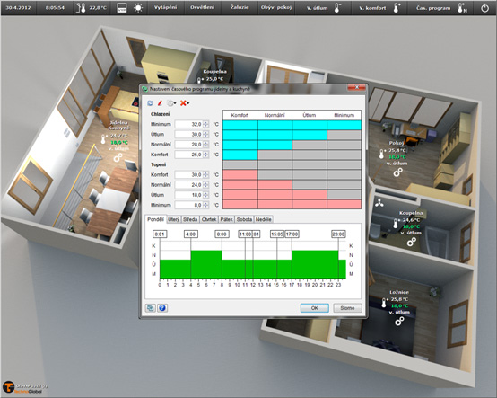 Control system and visualization of the heating and lighting systems at the Viladomy Gemini apartment complex in Ostrava. Implemented by: Technoglobal.CZ s.r.o.