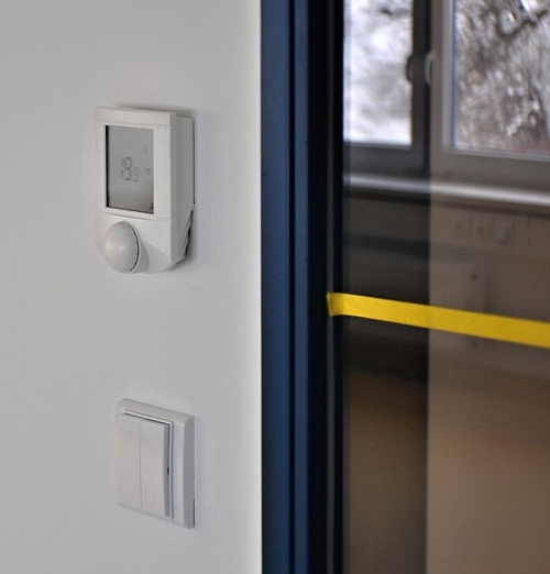 Training center is fully automated by intelligent electrical installation controlled by system Tecomat Foxtrot from our company. This technology controls and visualize complete lighting system (modern fluorescent tube lights), heating system containing two circuit gas boilers, supplying 25 radiators and floor heating of other part of the building. Heating is controlled according to measurement of outside temperatures and temperatures in rooms. Each room is independent. To change temperature from preset and pre-programmed cycles, they use interior module RCM2-1.
