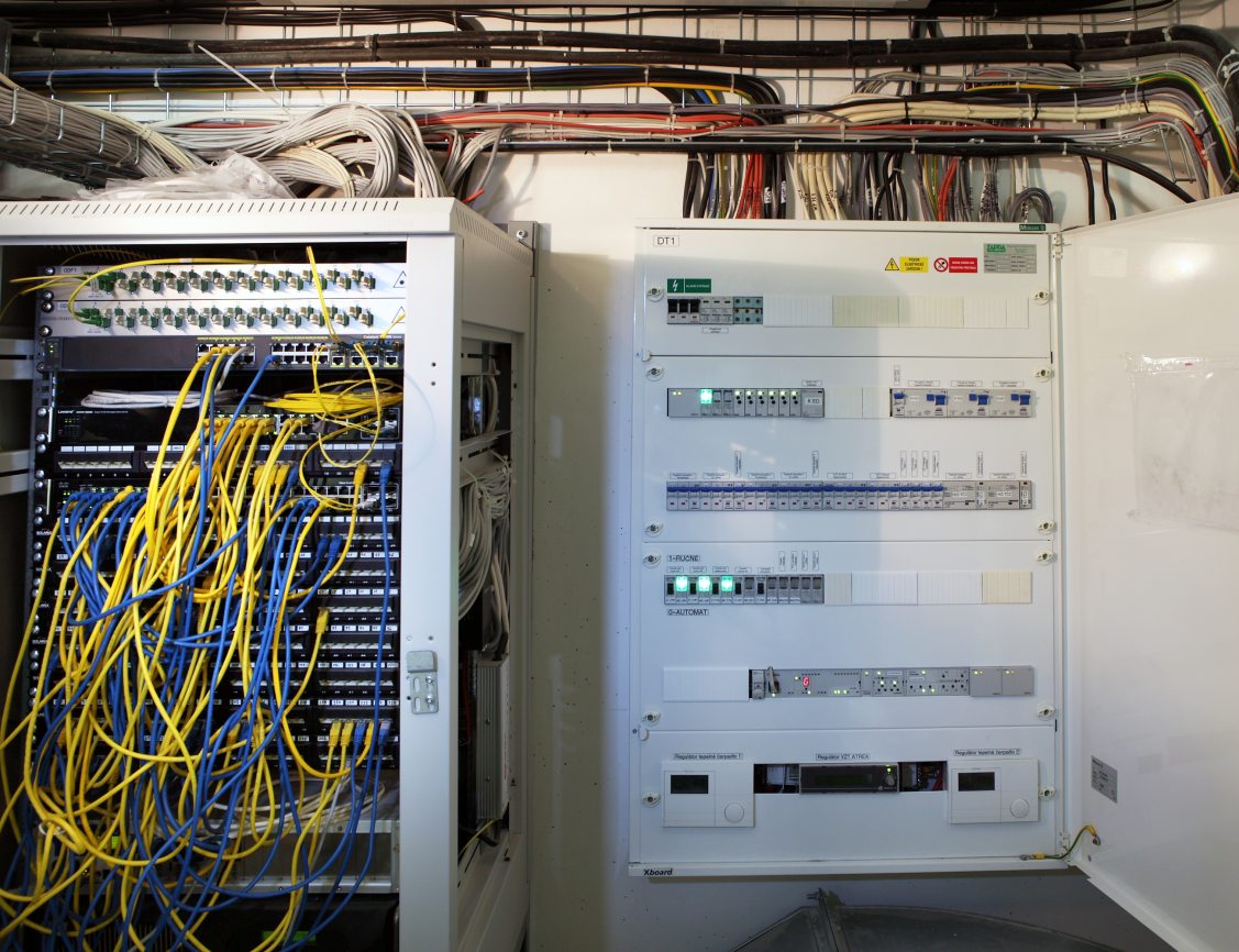 Tecomat Foxtrot here controls as well HVAC system including recuperation and heat pumps for heating of air. Foxtrot is connected with electronic security and fire alarm system Honeywell, including fire alarm sensors. There is also connected access system to Foxtrot. It is used for access to a part of the training center designated for accommodation of trainees. Control of the system is possible by wall touch panels ID-18 and room interior modules RCM2-1.