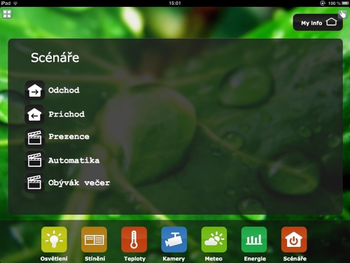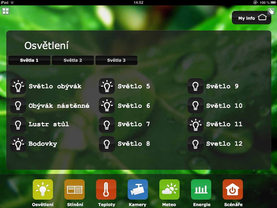 The intelligence is provided by control system Tecomat Foxtrot, here used for comfortable control of lights, jalousies, heating and other devices, certified electronic security system, camera system and multimedia system with recording. All included technologies are ready to use by user immediately after connection from modern visualization via tablets, smart phones and even remotely. And more over: user may creates his own scenes, temperature modes and other parameters of the system.