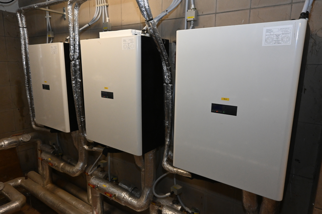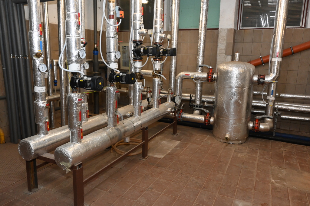 As main source of heating are used two 250kW boilers HOVAL connected in cascade. Foxtrot communicates with them via Modbus TCP. As back-up heating source are used three heating pumps, each 25kW. During heat distribution, system Foxtrot has to control big amount of mixing valves and pumps. Foxtrot monitors water pressure in heat distribution system and automatically refill to required value. All parameters and values are available for maintenance staff at web page control interface. Alarms from system are sending to staff by e-mails too.