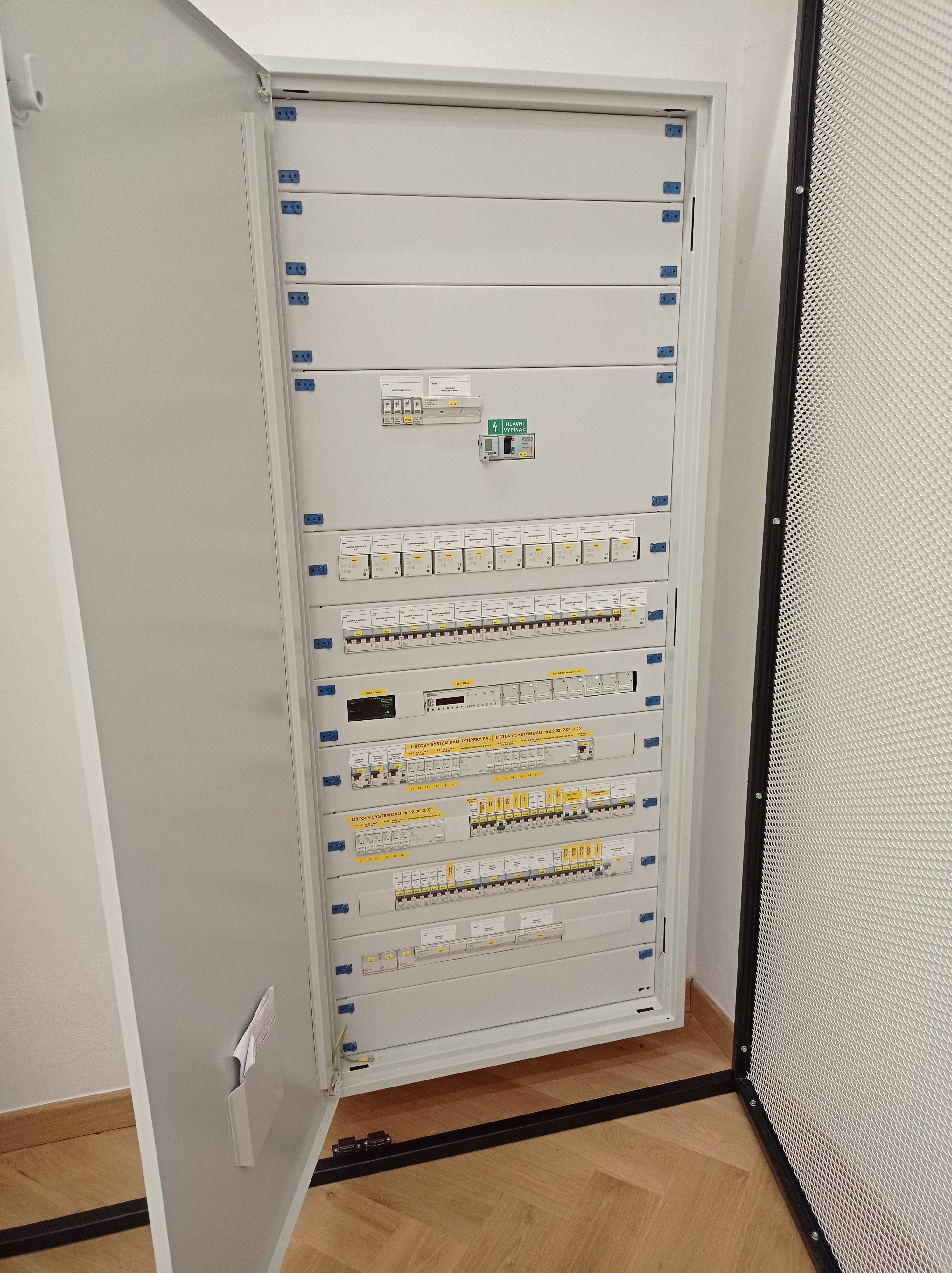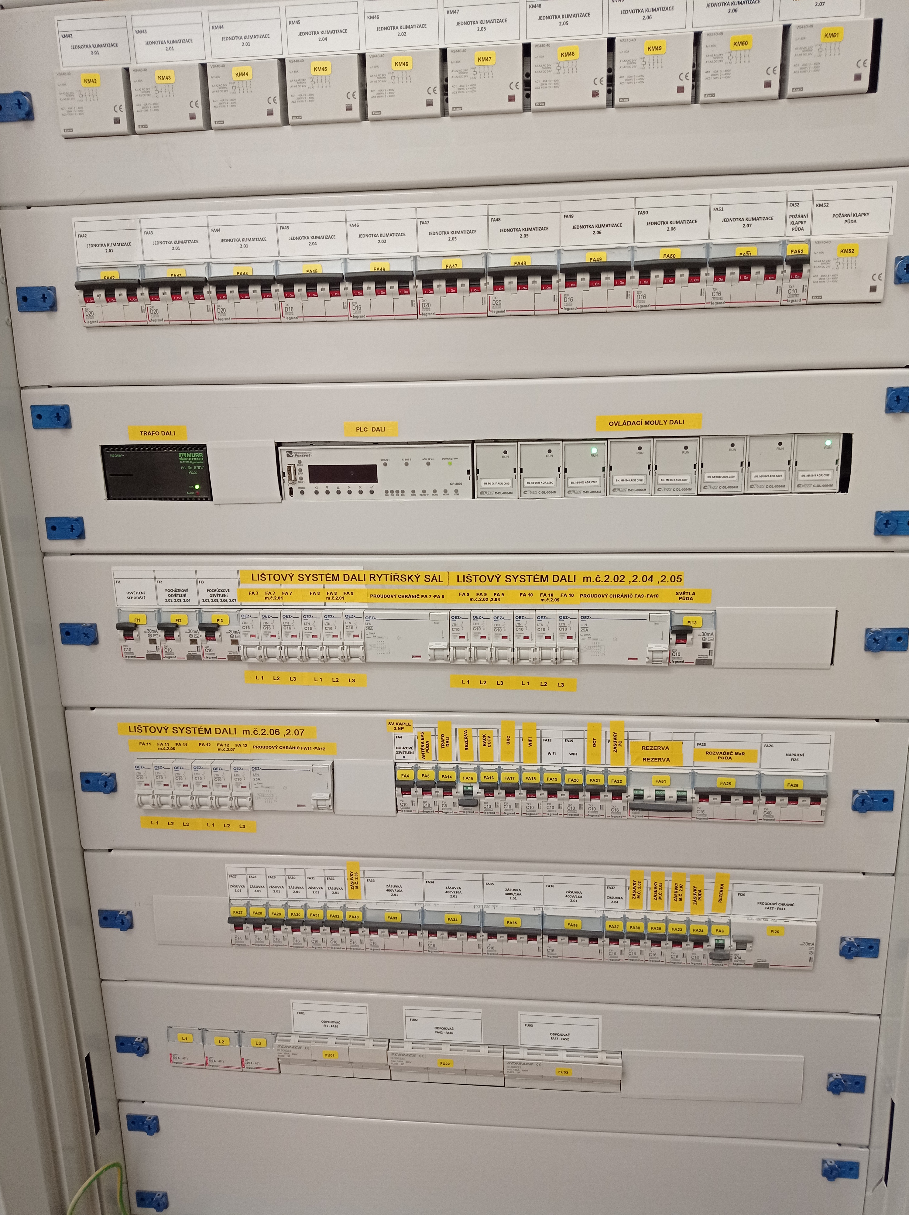 A DIN rail system for connecting and controlling up to 512 lights is installed throughout the gallery. A total of 150 directional lights are used to light up the paintings and they are individually controlled by the Tecomat Foxtrot system via DALI buses.