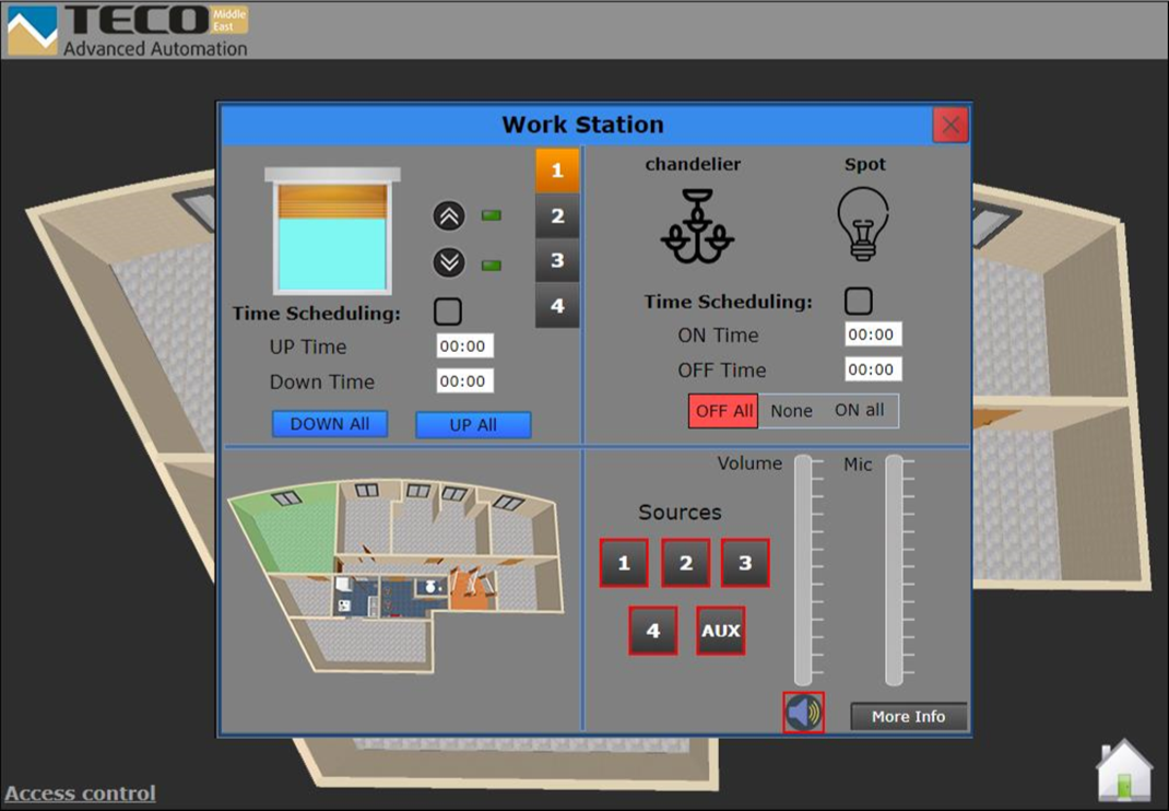 In Erbil, Iraq, there is a two-storey office building in which the Tecomat Foxtrot control system controls all office technologies - lighting, blinds, sound, camera and security system.