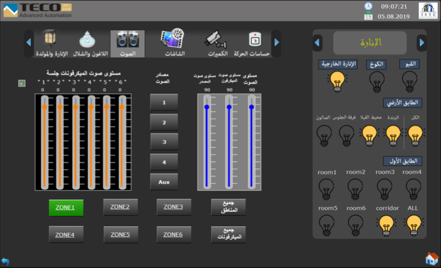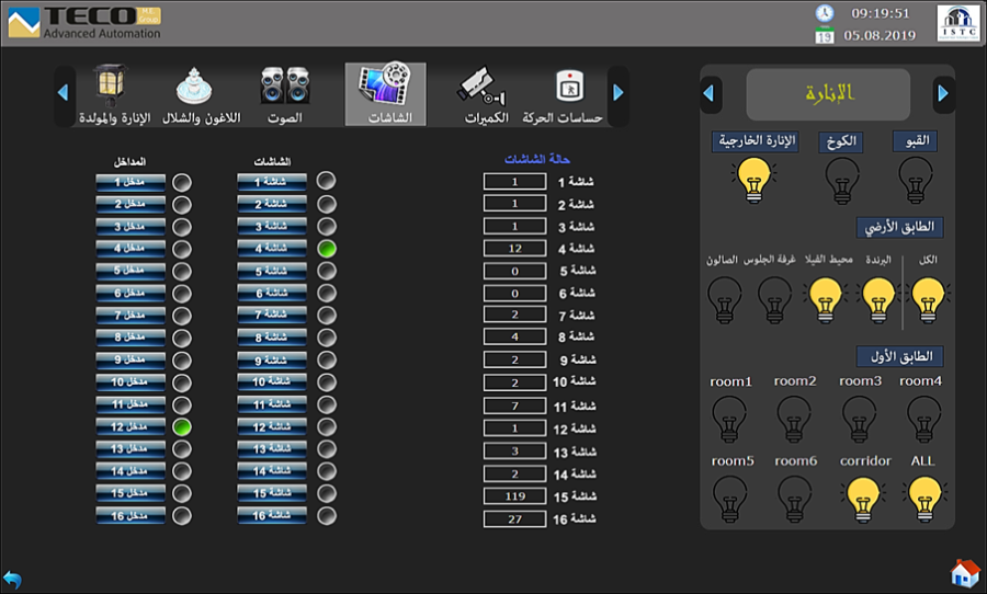 In the villa there are several different lights distributed throughout the villa. The owner can thus easily select the desired level of artificial lighting with the help of the wall switches or with the help of the touch screen of his phone / tablet.