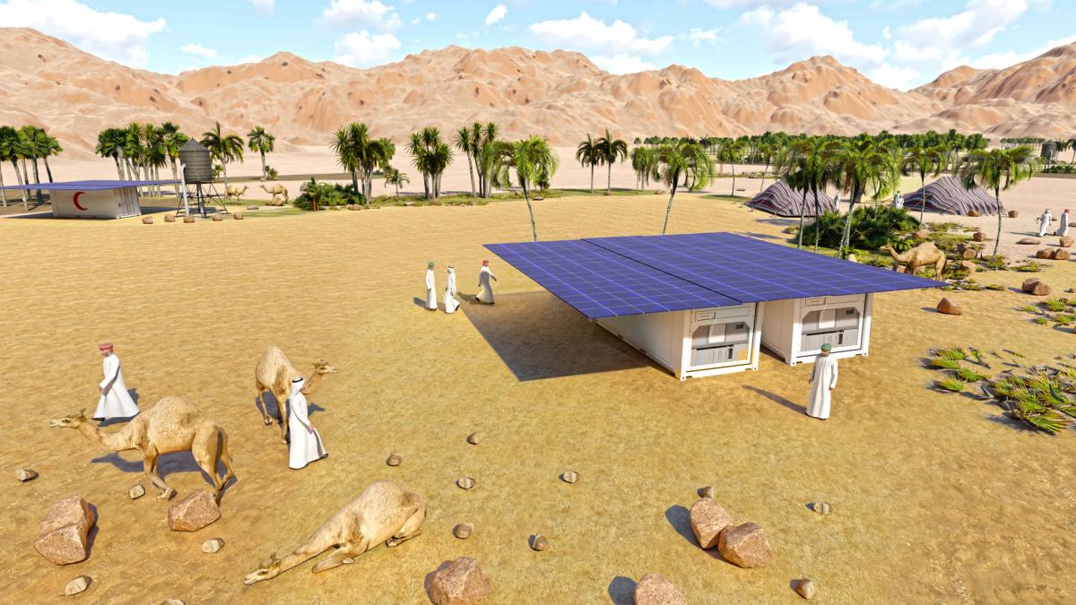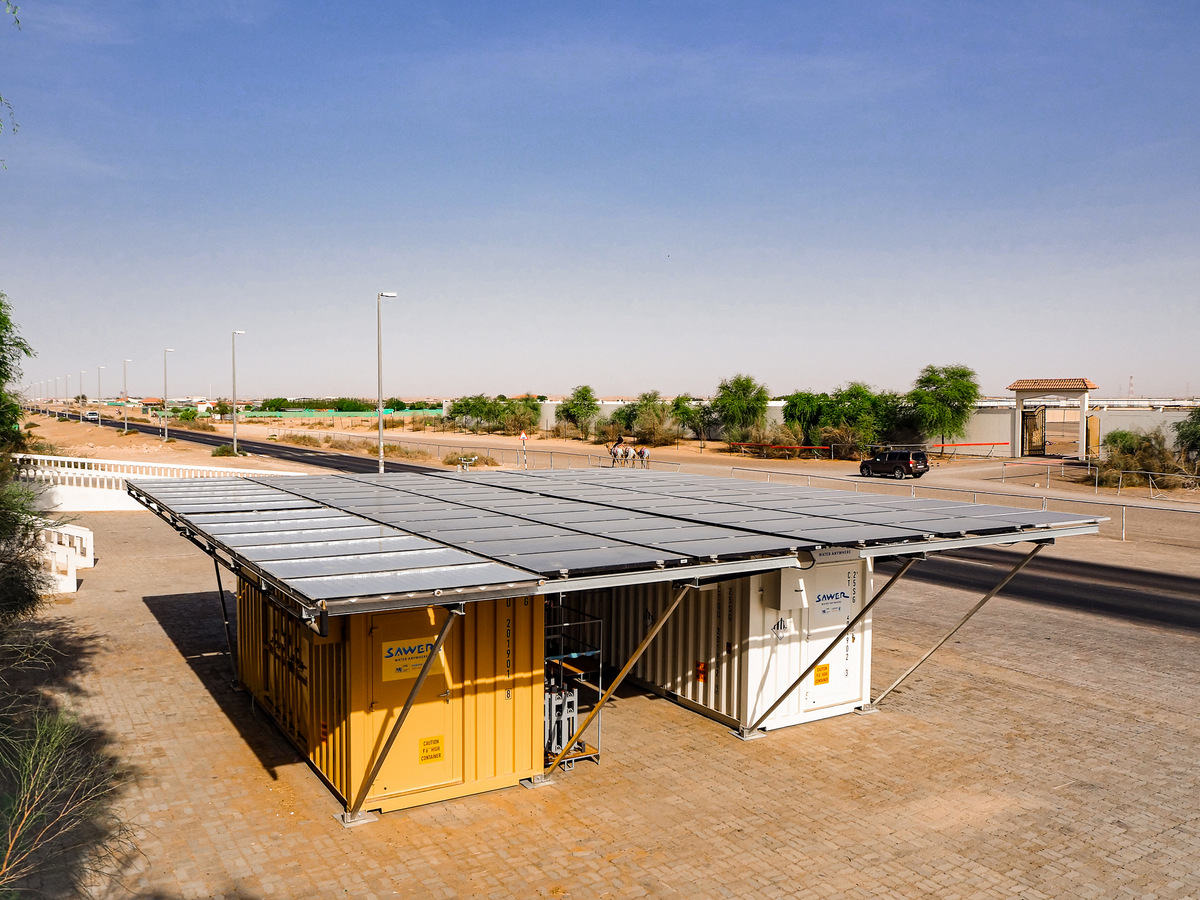 Scientists launched the S.A.W.E.R. system in United Arab Emirates in summer 2019. The testing of the system was done in the Sweihan desert in UAE for about six months so that data from operation in extreme summer conditions as well as in autumn and winter are available. Experience gained from the test operation was used by engineers when designing the device for the Czech pavilion at EXPO 2020 in Dubai. This unit with the production capacity of 500 litres of water per day that uses the same technology as the container version and it was designed as a part of the pavilion technology and it irrigates the oasis growing from the sand around the pavilion.