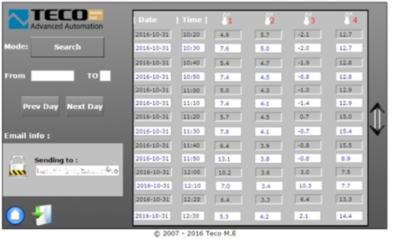 The temperature inside the cooling appliances is measured every 10 minutes and the measured values are stored in the system and also sent to a specified person by email. The measured values are stored in a database that is available for possible future use, for example during an audit. When the temperature deviates from the desired values set by the user, an alarm is immediately triggered and the owner receives a notification on his mobile device