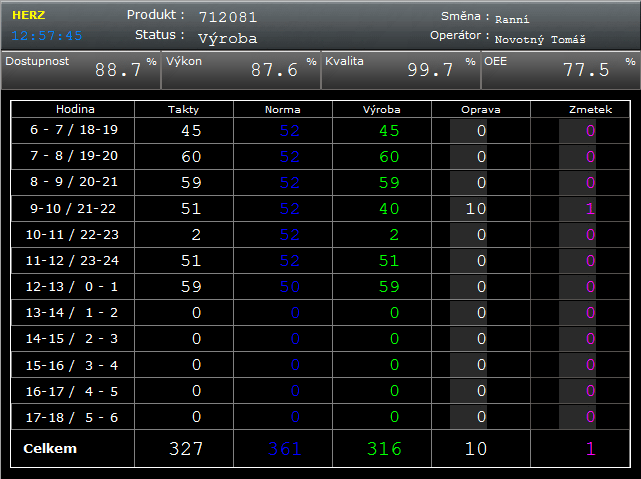 Terminal OEE - Overall Equipment Effectiveness. Implemeted by: LAMAL s.r.o.