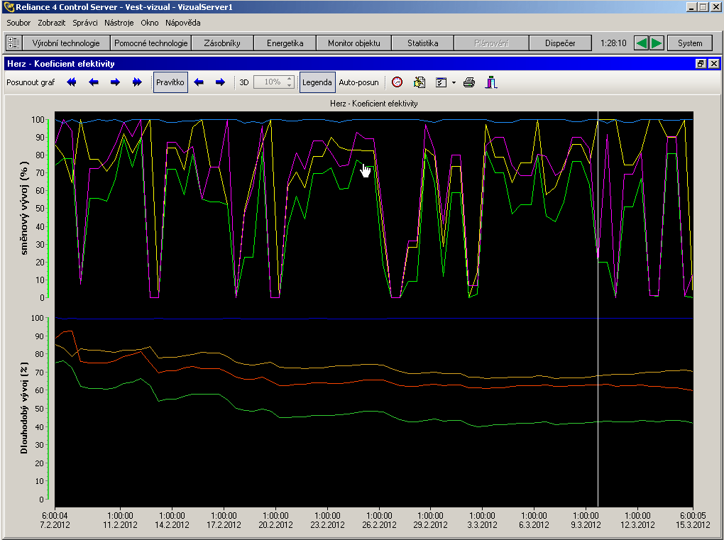 - current performance compared with standardized performance and with possibility of graphical vizualization at large-screen monitor