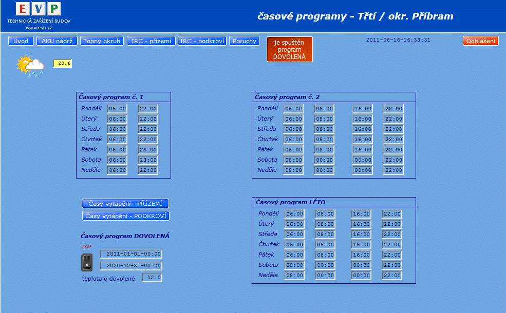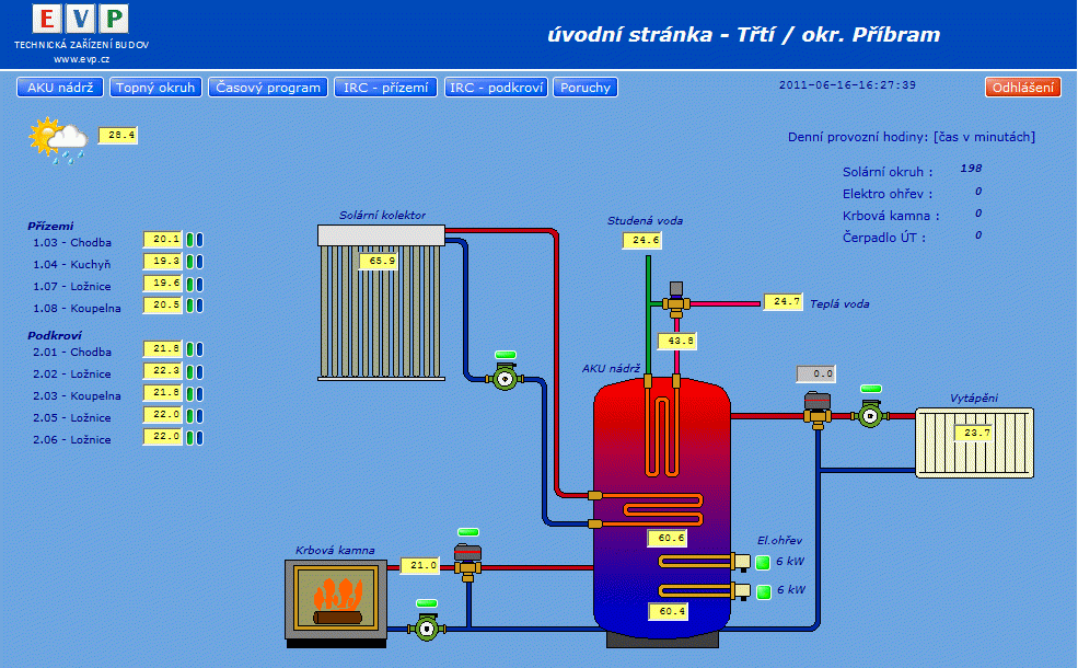 Control system and visualization of the family house in Trti with several heat sources. Implemented by: EVP v.o.s.