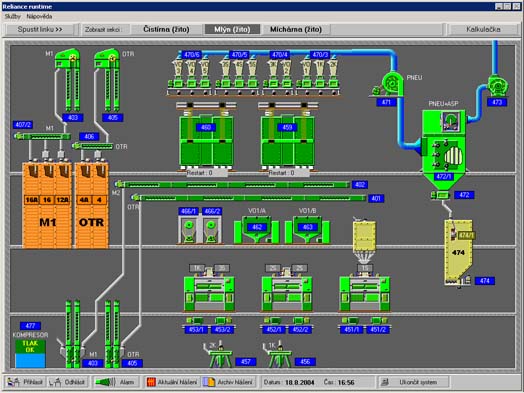 In 2003, a new Control System of automatic mill technology was implemented by Jiri Machek (now ASSORTIS Electric s.r.o.). All production lines are controlled by the PLC TECOMAT NS-950 manufactured by the Teco company. The PLC is connected to a computer with the Reliance 3 SCADA/HMI System.