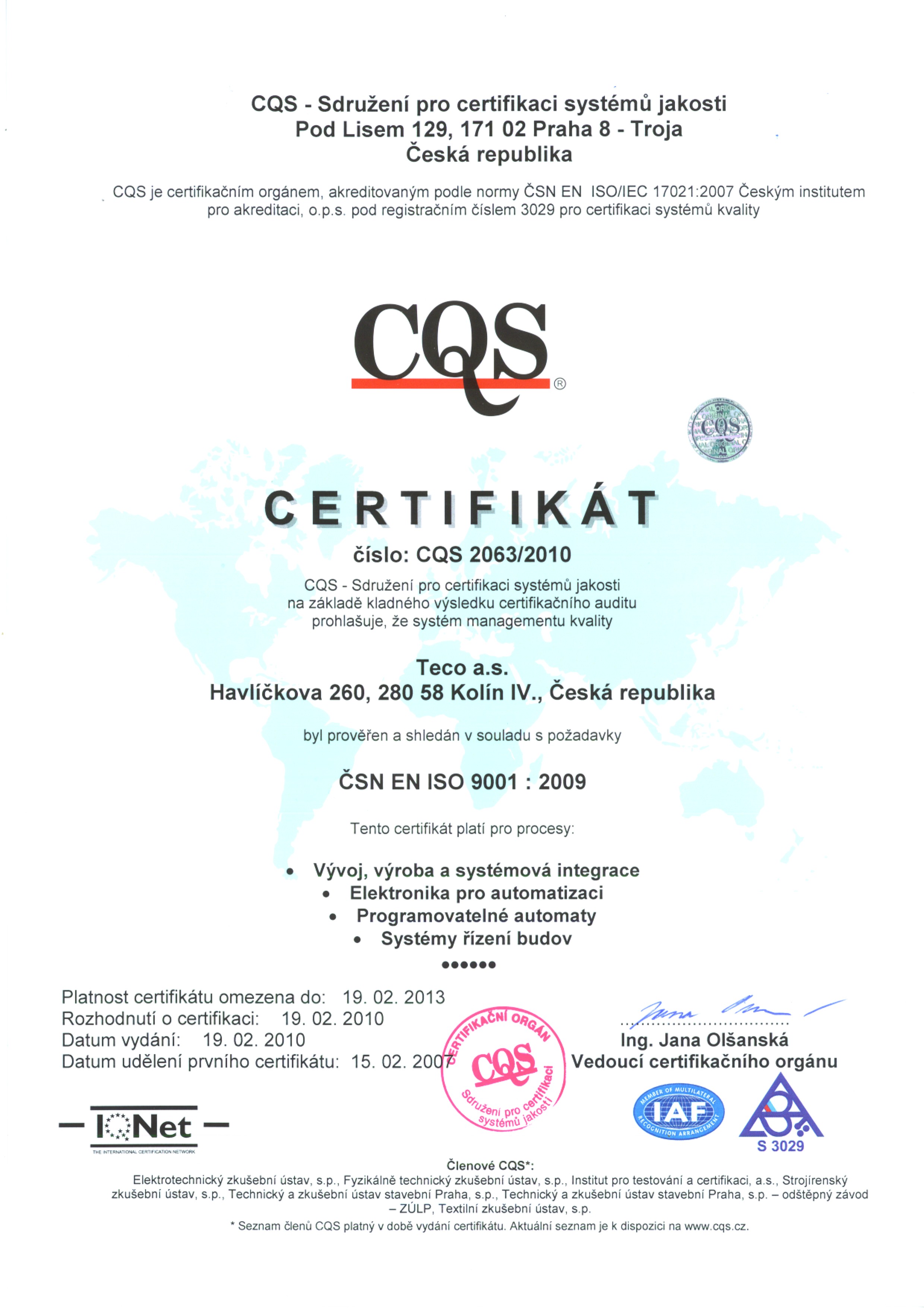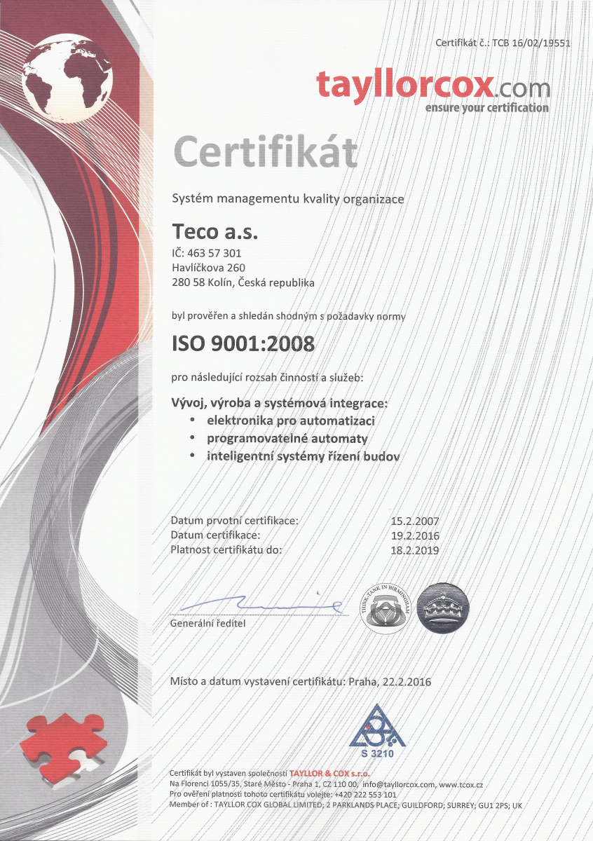 Certifikace Certifikace ISO Certifikace UL V současné době jsou certifikovány UL tyto produkty: CP-2007