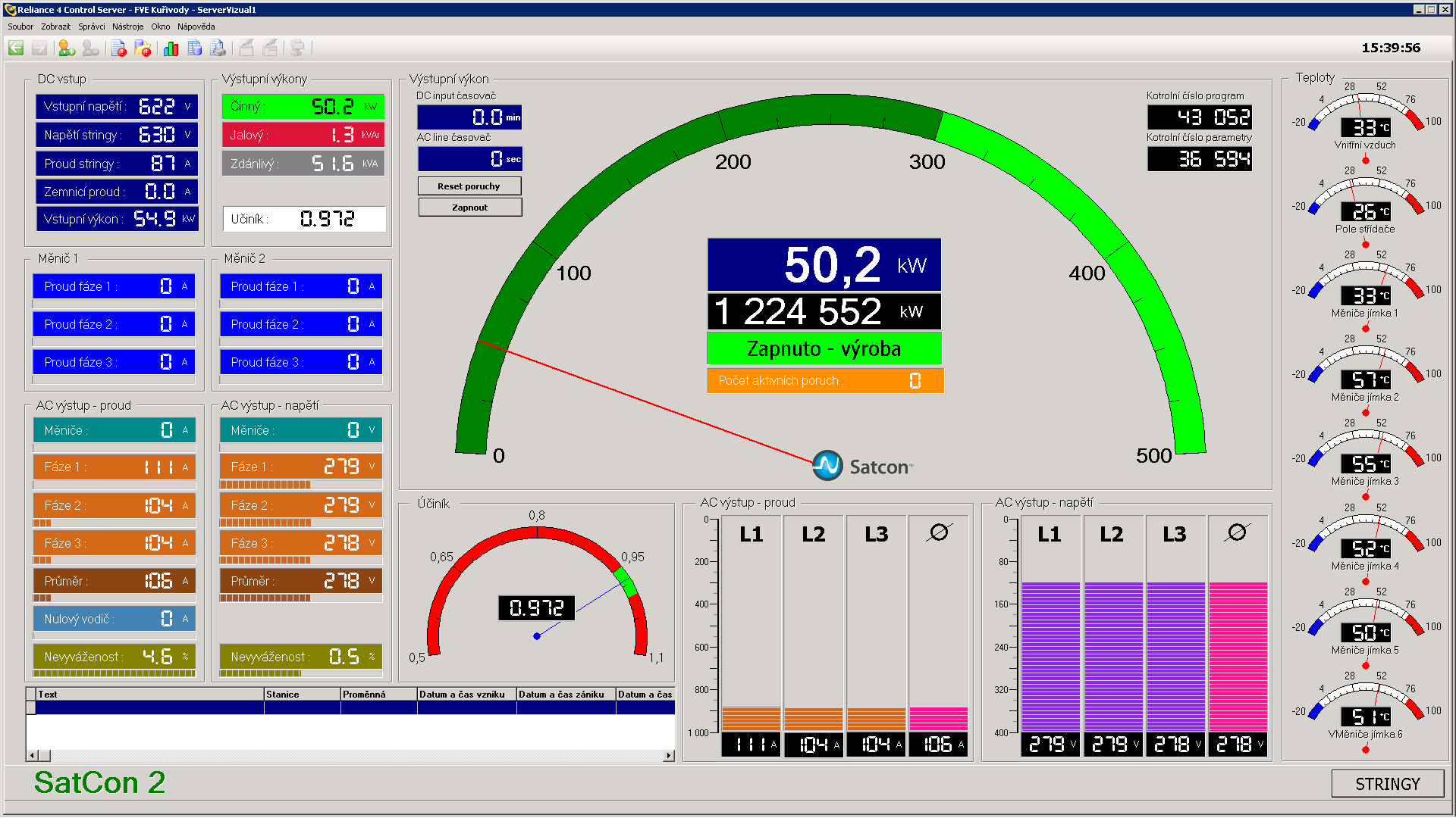 - sledování stavů střídačů – prostřednictvím datové komunikace OPC jsou online sledovány provozní data a poruchová hlášení jednotlivých sřídačů.