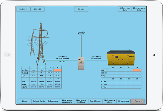 - Monitoring spotřeby elektrické energie a záložního generátoru elektrické energie.