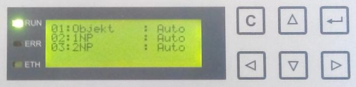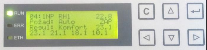 Pro případ nemožnosti ovládání webovými stránkami (při výpadku lokální sítě apod.) je realizováno i ovládání regulace pomocí tlačítek a displeje přímo na centrální jednotce.