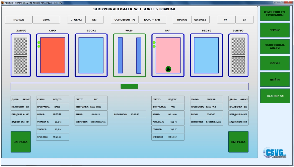 Všechna data ze systému TC700 jsou předávána do průmyslového dotykového počítače, na němž je nainstalován modul Reliance 4 Control. SCADA systém Reliance umožňuje obsluze prostřednictvím vizualizačních obrazovek sledovat stav a průběh procesu, nastavovat parametry (včetně receptur), monitorovat alarmová hlášení a prohlížet historická data pomocí grafů či tabulkových sestav.