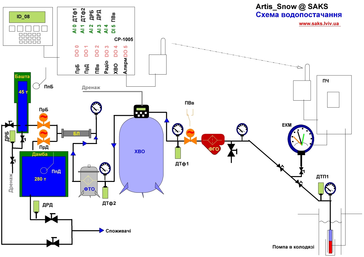 - z důvodů snížení ekonomické náročnosti na provoz a materiál, na výrobní čas dodávky vody je instalována možnost vzdálené kontroly procesů operátory, aplikátorem a servisní službou