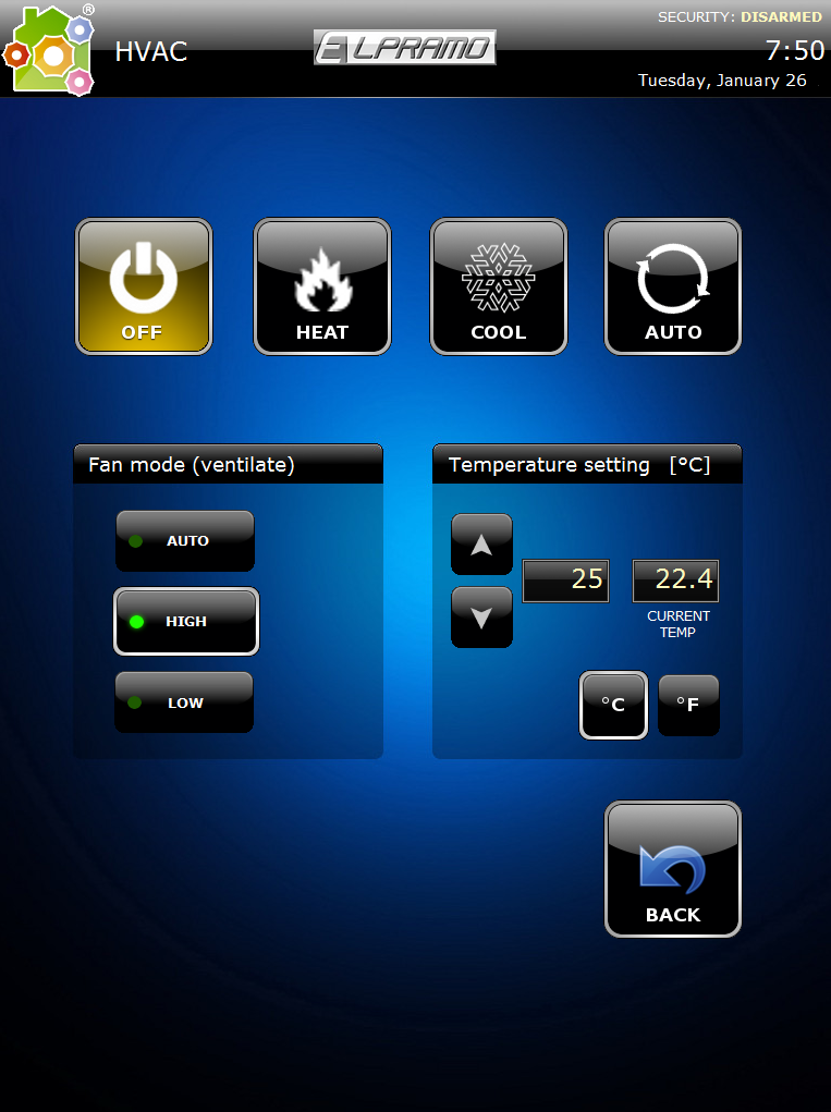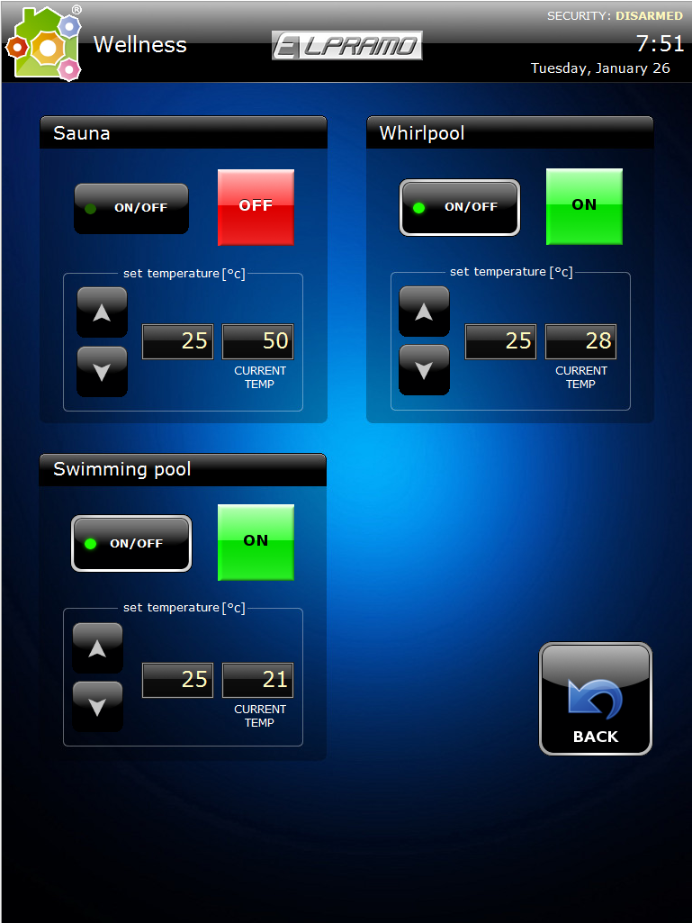 Řízení systému vytápění rodinného domu a integrace se systémem Lutron - Düsseldorf, Německo. Realizace: ELPRAMO s.r.o., KD Elektronika s.r.o.