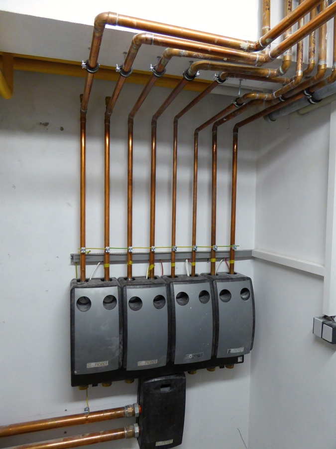 - Systém vytápění - 2 x plynový kotel Viesmann v kaskádovém řízení, 4 samostatně řízené okruhy vytápění – TUV, 1NP - radiátory, 2NP - radiátory, 2NP – podlahové topení