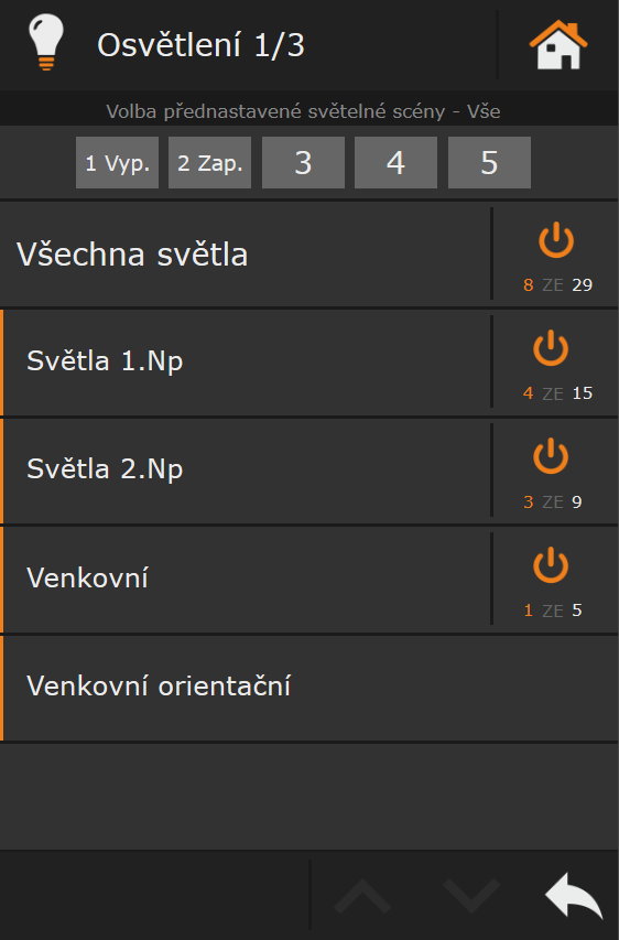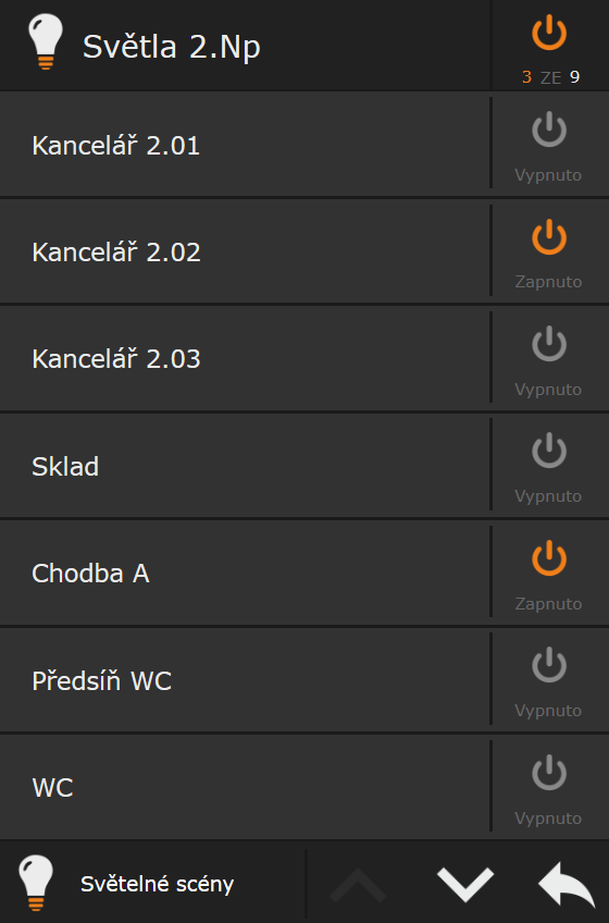 Vizualizace ovládání je ve Webmakeru. K dispozici je samozřejmě vzdálený přístup na ovládání prostřednictvím chytrého telefonu/tabletu/PC.