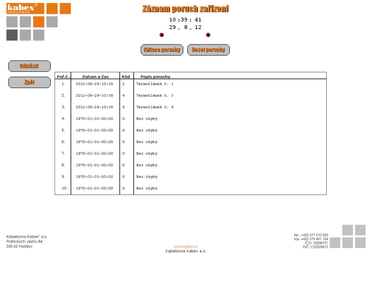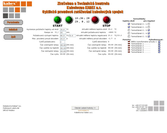Zároveň jsou během zkoušky logována všechna důležitá data (teploty, proud, počet dokončených cyklů a aktuální časová značka cyklu) s periodou 60s pro doložení kompletních dat o provedené zkoušce. V případě vzniku chyby, poruchy nebo nadefinované události dojde k asynchronnímu zápisu do souboru poruch a událostí a to vždy s časovou značkou pro pozdější přesné vyhodnocení příčiny poruchy.